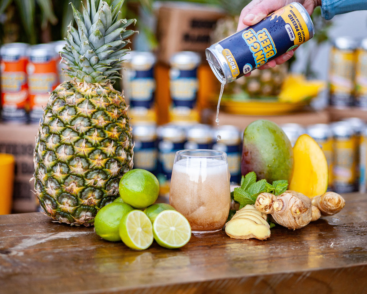 5 Ingredients: Cold-Pressed Ginger, Lime & Mint, Blended with Agave Syrup & Sparkling Water. |